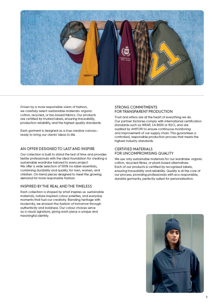 Discover the Native Spirit 2026 collection, featuring timeless, customizable wardrobe essentials designed with a strong commitment to sustainability. Every product in the catalog is crafted exclusively from organic, recycled, and plant-based materials, meeting the highest ethical and environmental standards, including GOTS, OCS, RWS, EVE VEGAN, and GRS certifications.