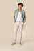 - Waistband with loops and inner waistband finish with contrasting navy blue French seam