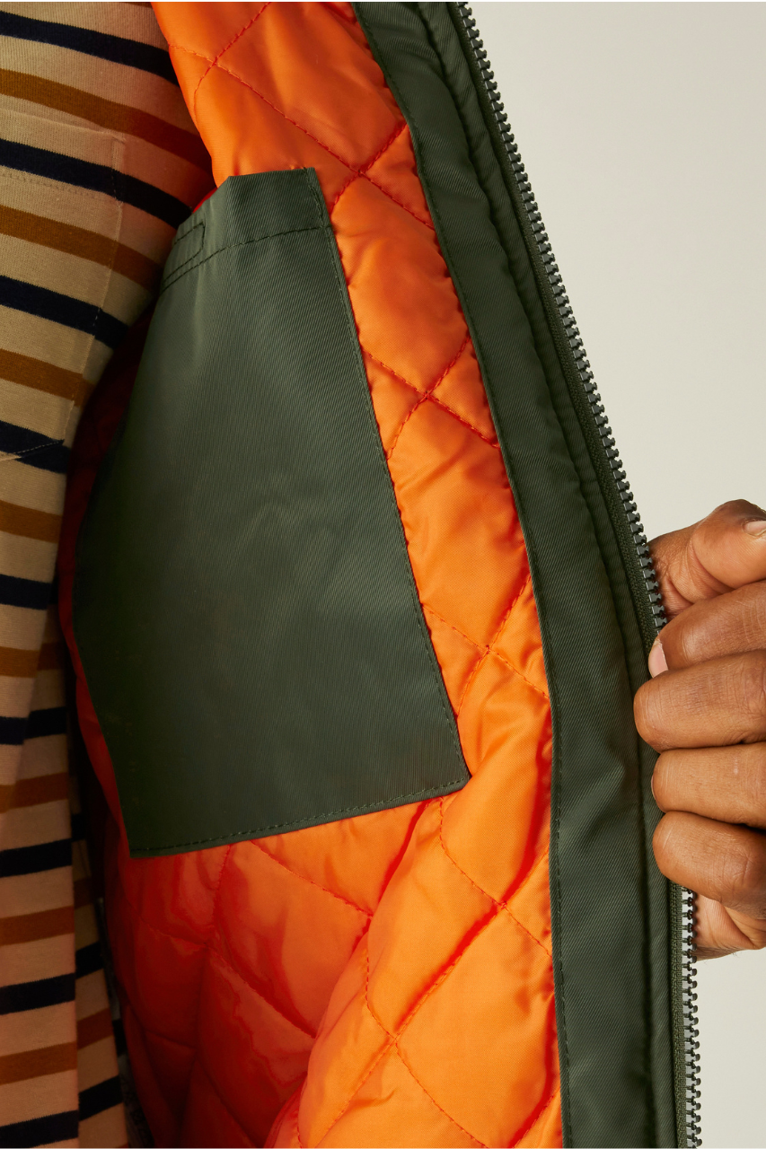 - Concealed zip entrance in lining for embroidery access